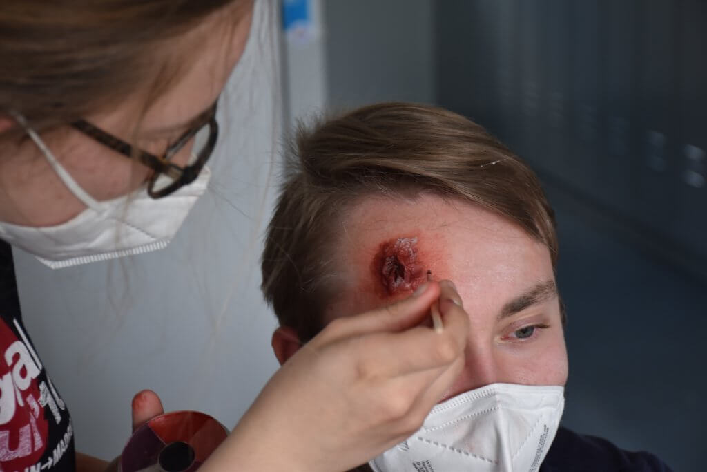 Mai 2022, Tobias Hilbers, Celine Sieck | Am Samstag, den 7. Mai 2022 haben sich vier Jugendbetreuerinnen und Jugendbetreuer im THW Ortsverband Ludwigsburg mit dem Thema Übungen für die Jugendgruppe beschäftigt. So wurde unter anderem mögliche Übungsobjekte, Rahmenbedingungen und Regeln für eine Übung besprochen. Praktisch wurde es beim Schminken von Verletzungen, so übten die Teilnehmerinnen und Teilnehmer Verletzungen wie Abschürfungen, Schnittwunden oder Platzwunden zu schminken und welche Materialien dafür benötigt werden. Ein besonderer Dank geht dabei an Kursleiter Tobias Hilbers und Kursleiterin Celine Sieck für die Durchführung und Organisation des Seminars. Hier sind noch ein paar tolle Eindrücke für euch zusammengefügt! Wollt ihr, dass diese Veranstaltung auch in eurem Ortsverband stattfindet? Dann schickt uns eine Anfrage! Bei entsprechender Gruppengröße bieten wir auch Workshops vor Ort – in eurer Nähe – an! Achtung: Nachfolgende Bilder könnten verstörend wirken!